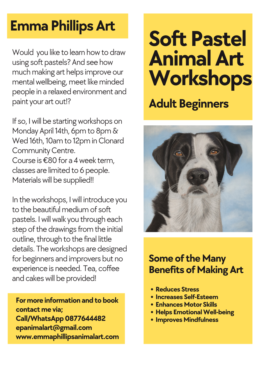 Step into a relaxed, inspiring space where creativity meets mindfulness. In my workshops, you’ll explore colour, texture, and expression using soft pastels — no experience needed. Each session is about slowing down, connecting with your imagination, and leaving with a piece that’s uniquely yours.